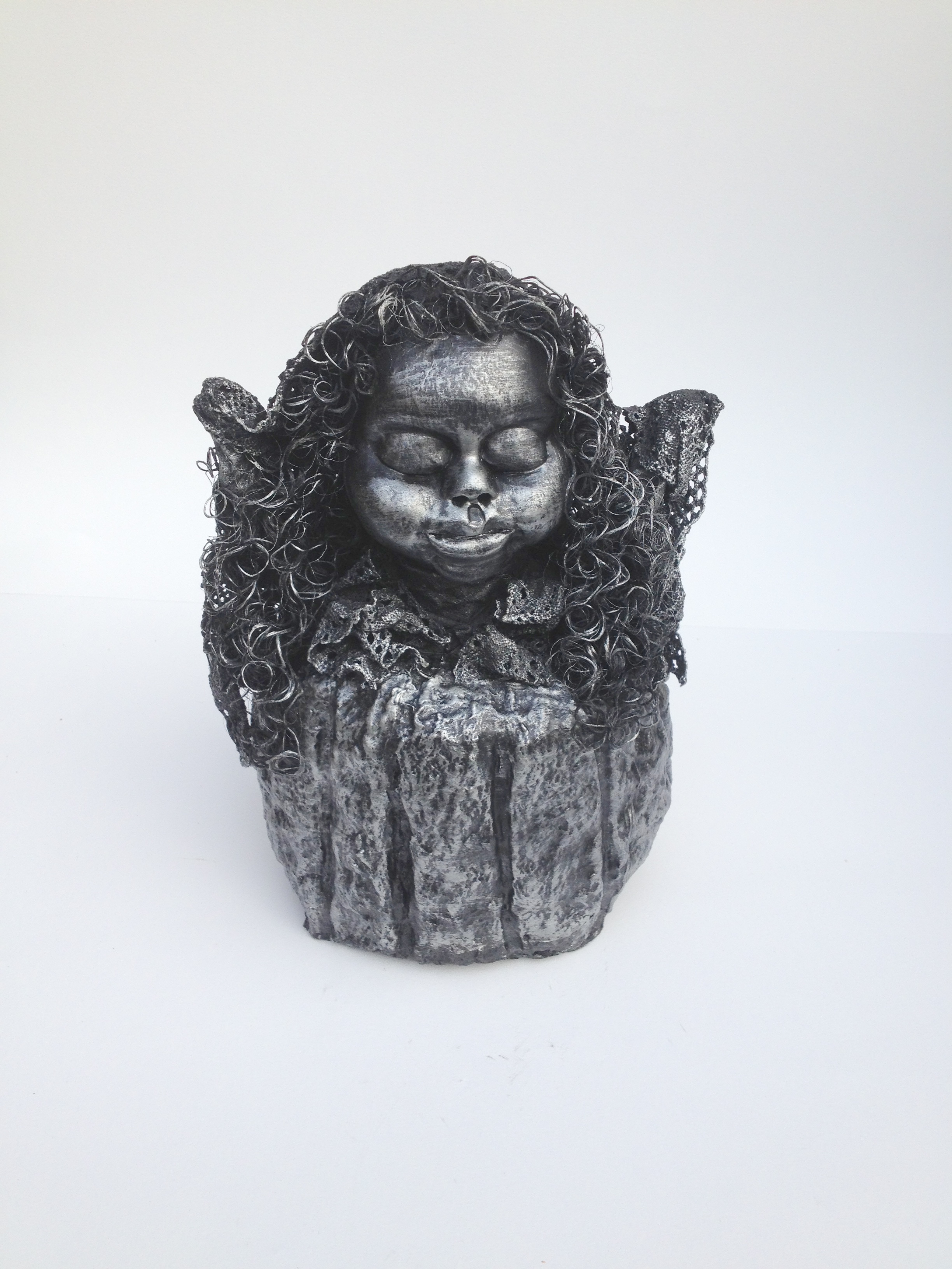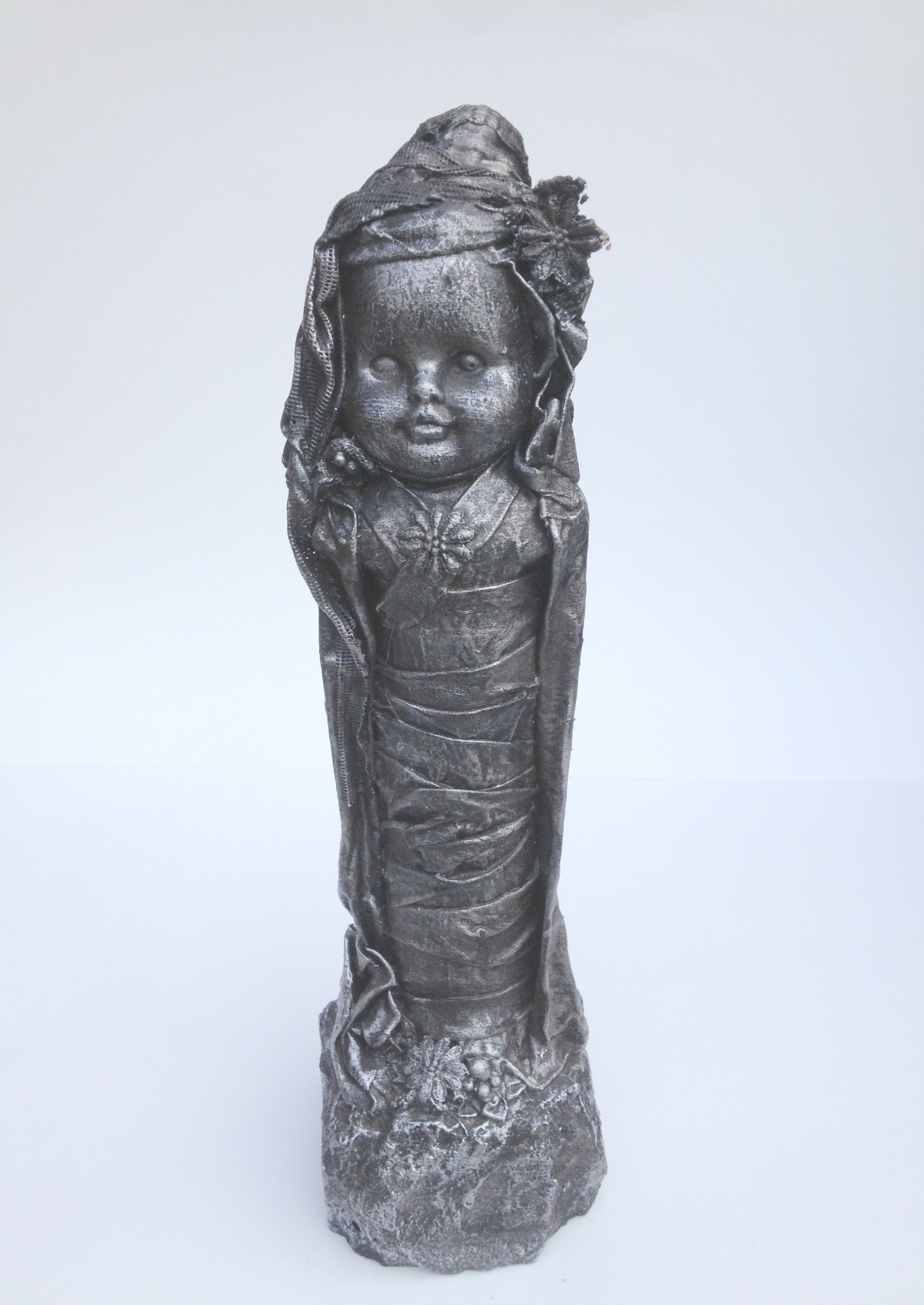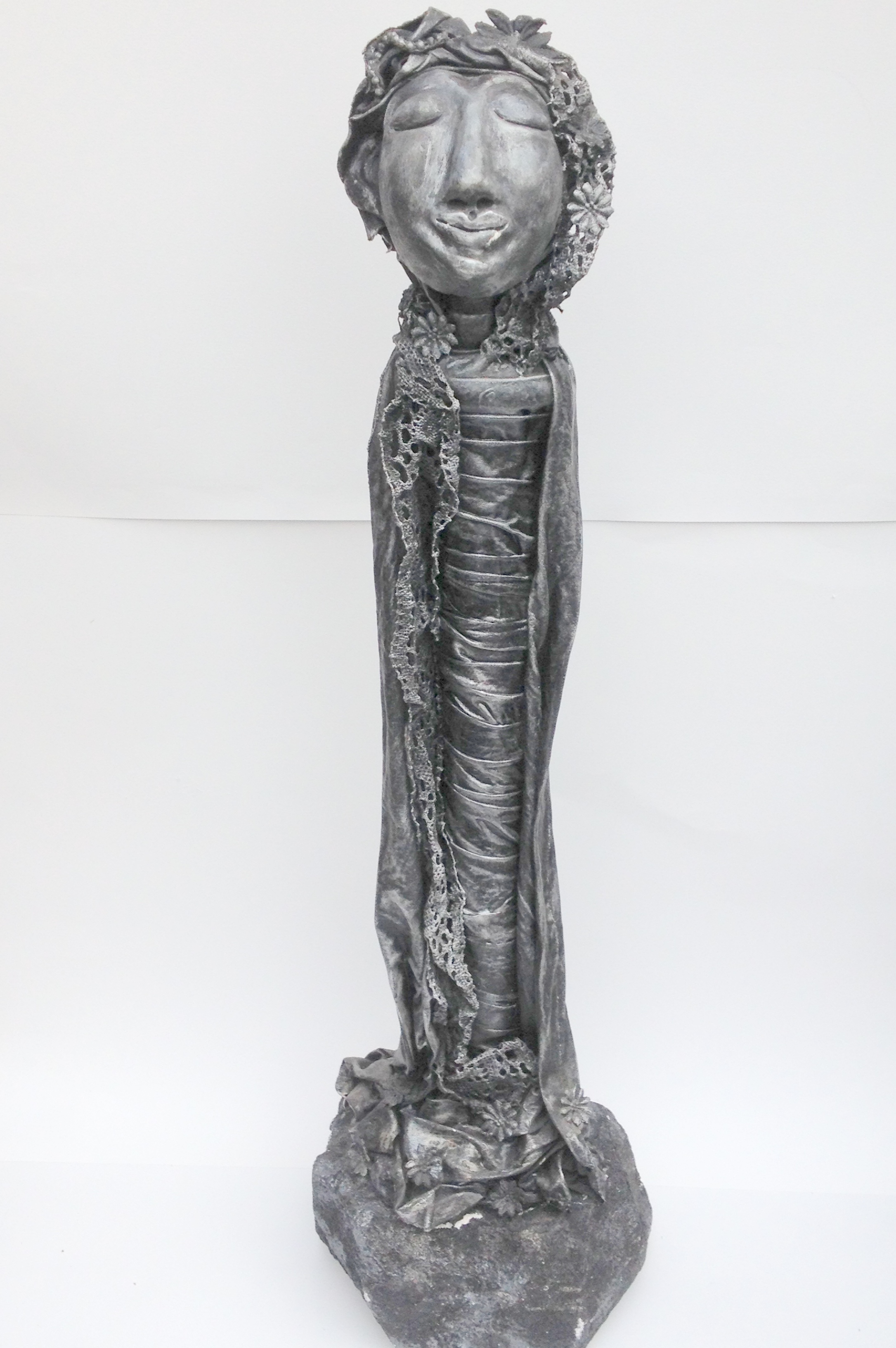 Deze unieke beelden zijn gemaakt van powertex textielverharder, gips, betonblok en andere materialen .