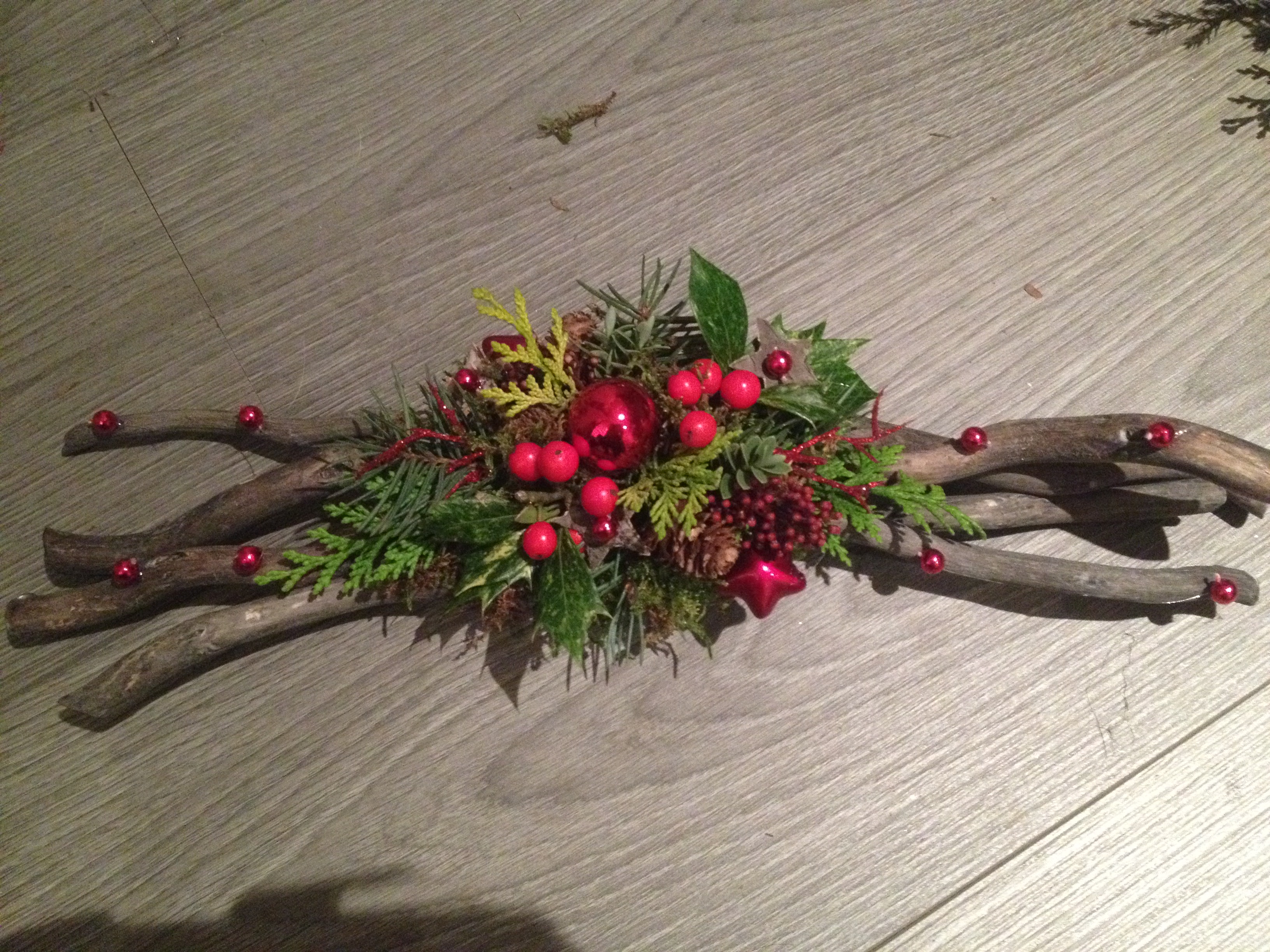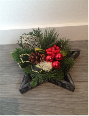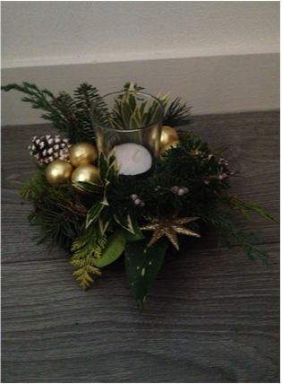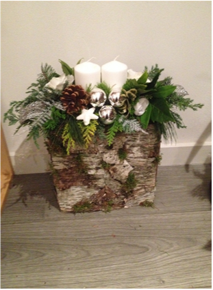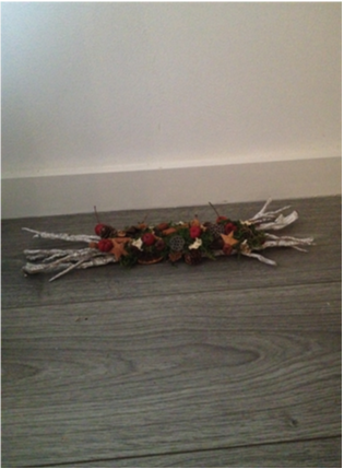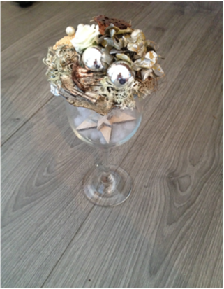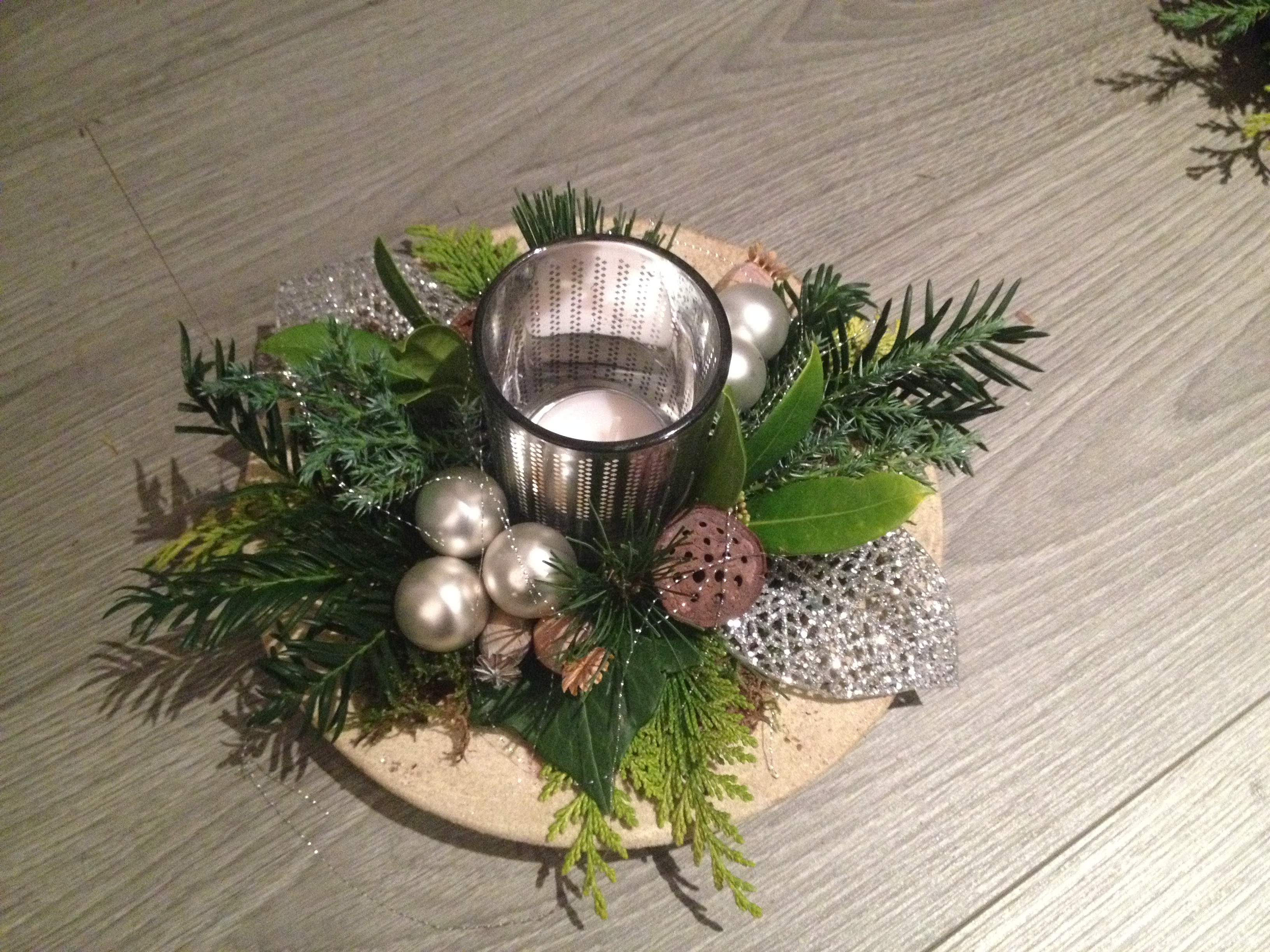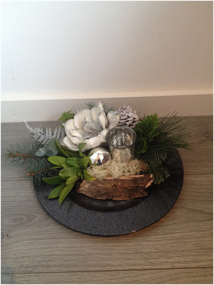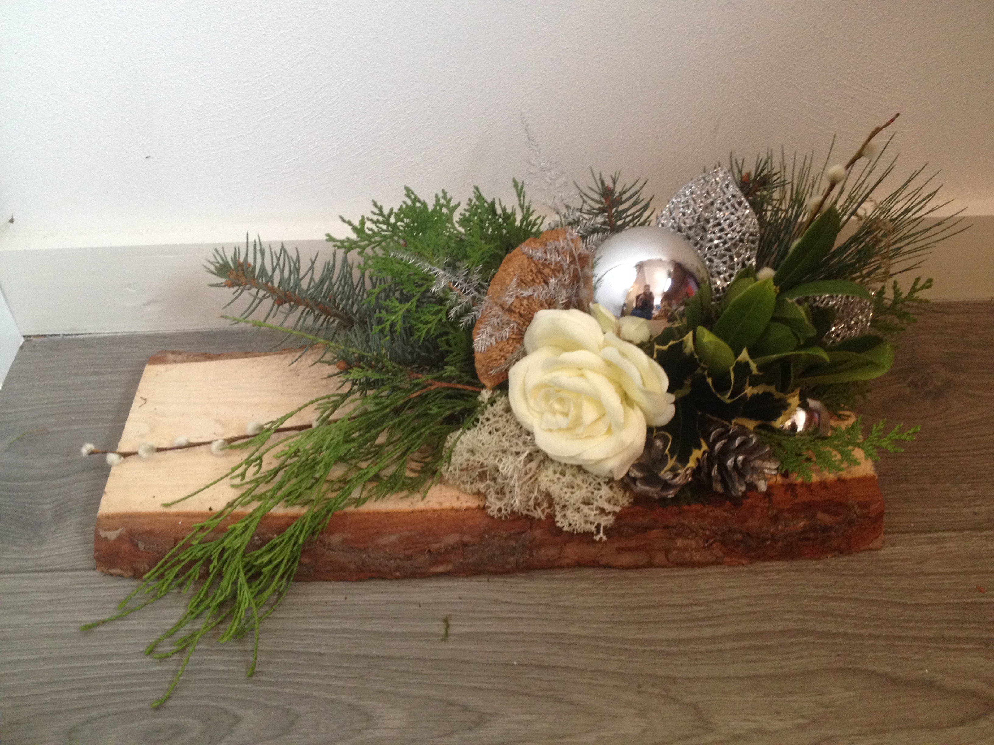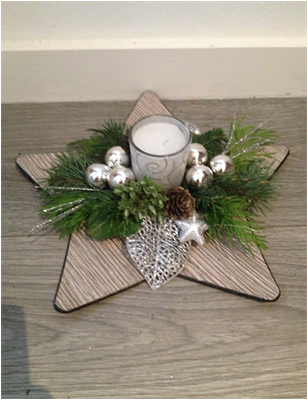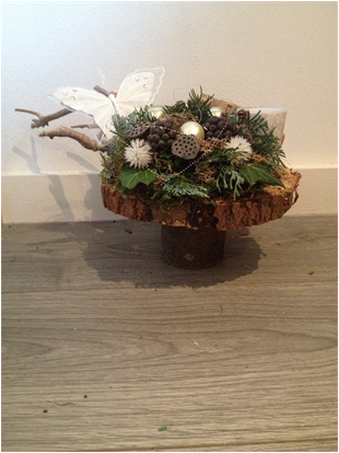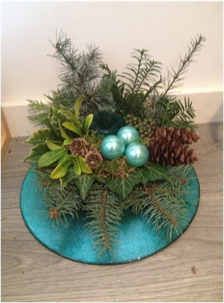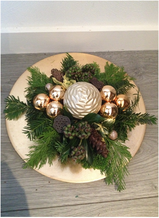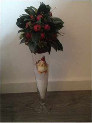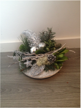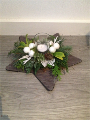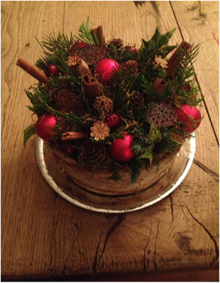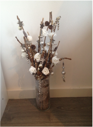 De kerststukjes zijn zelf ontworpen en gemaakt met verse takken zodat ze minimaal 2 weken staan!