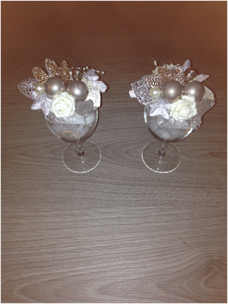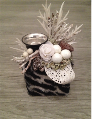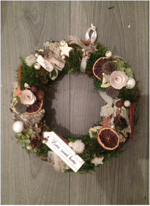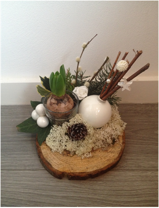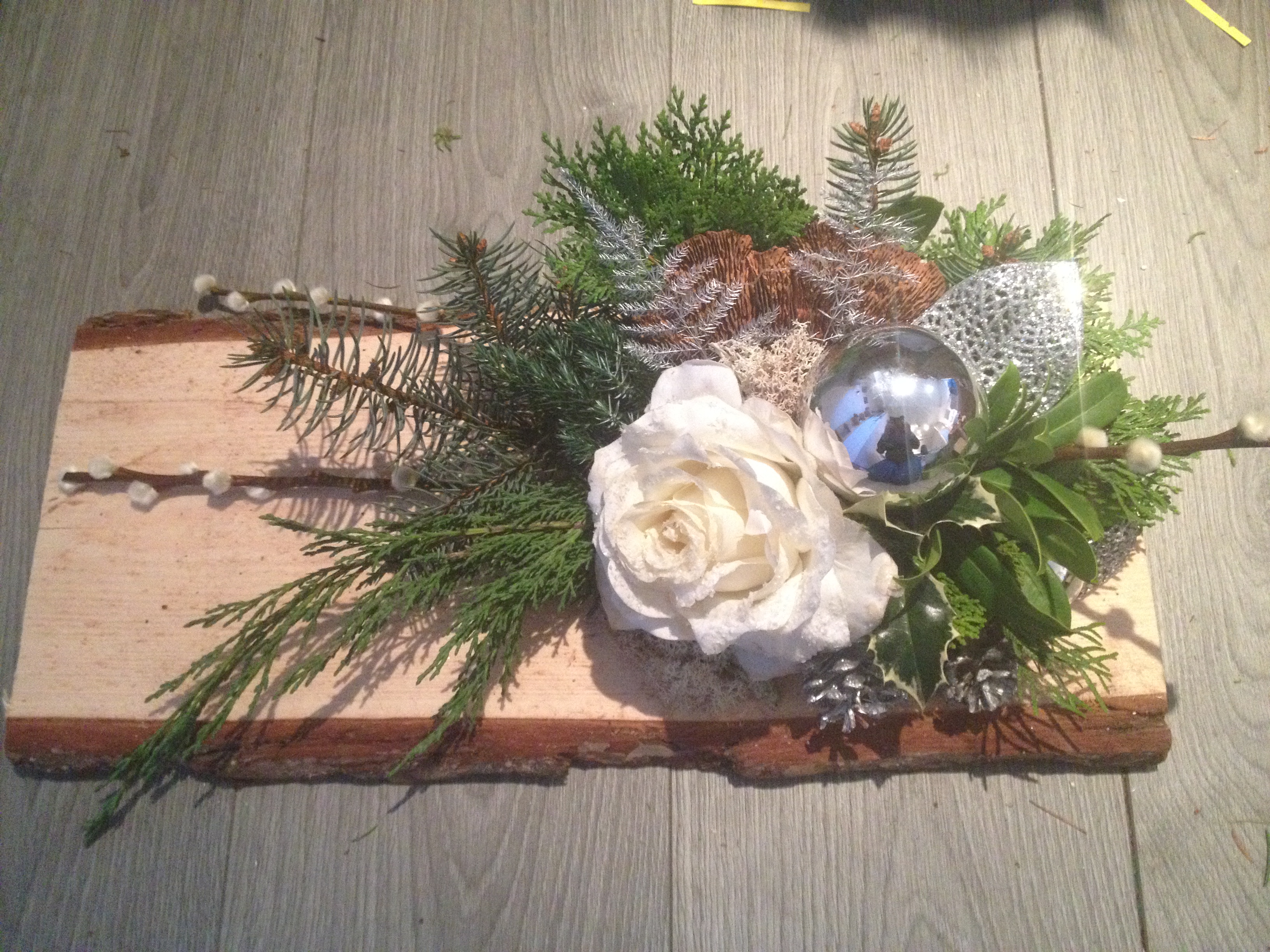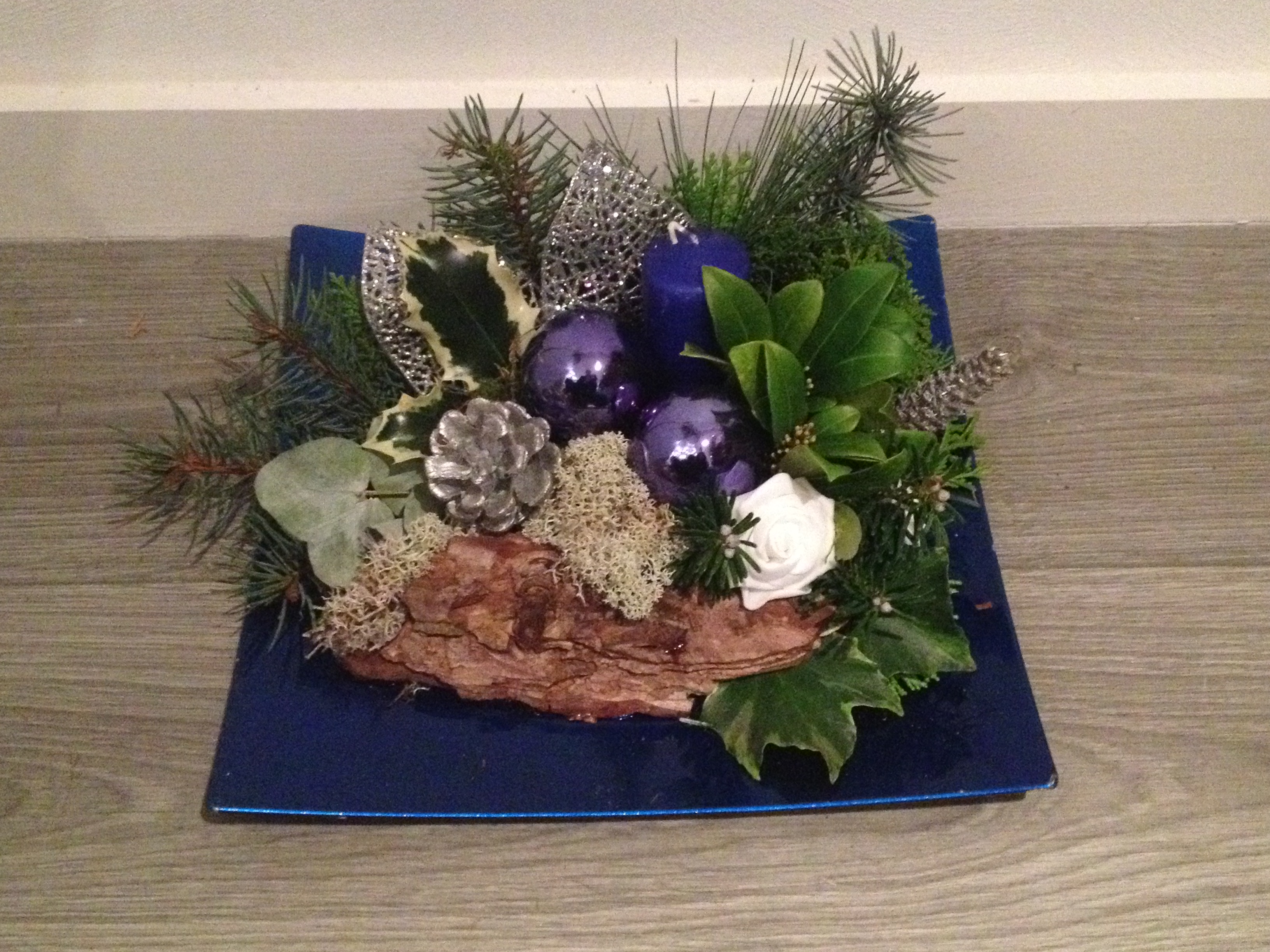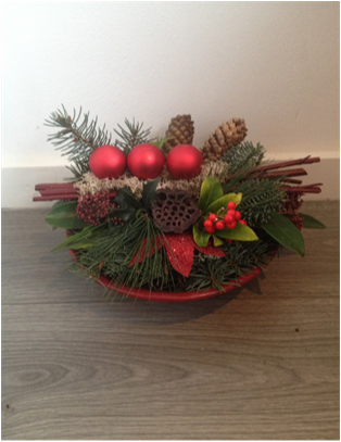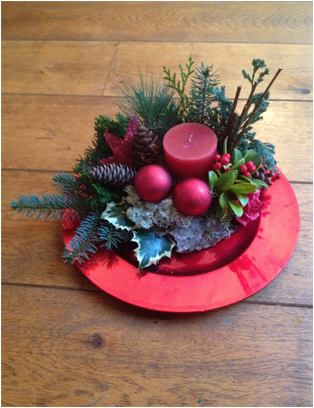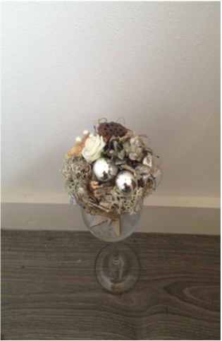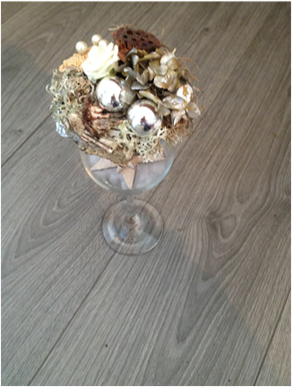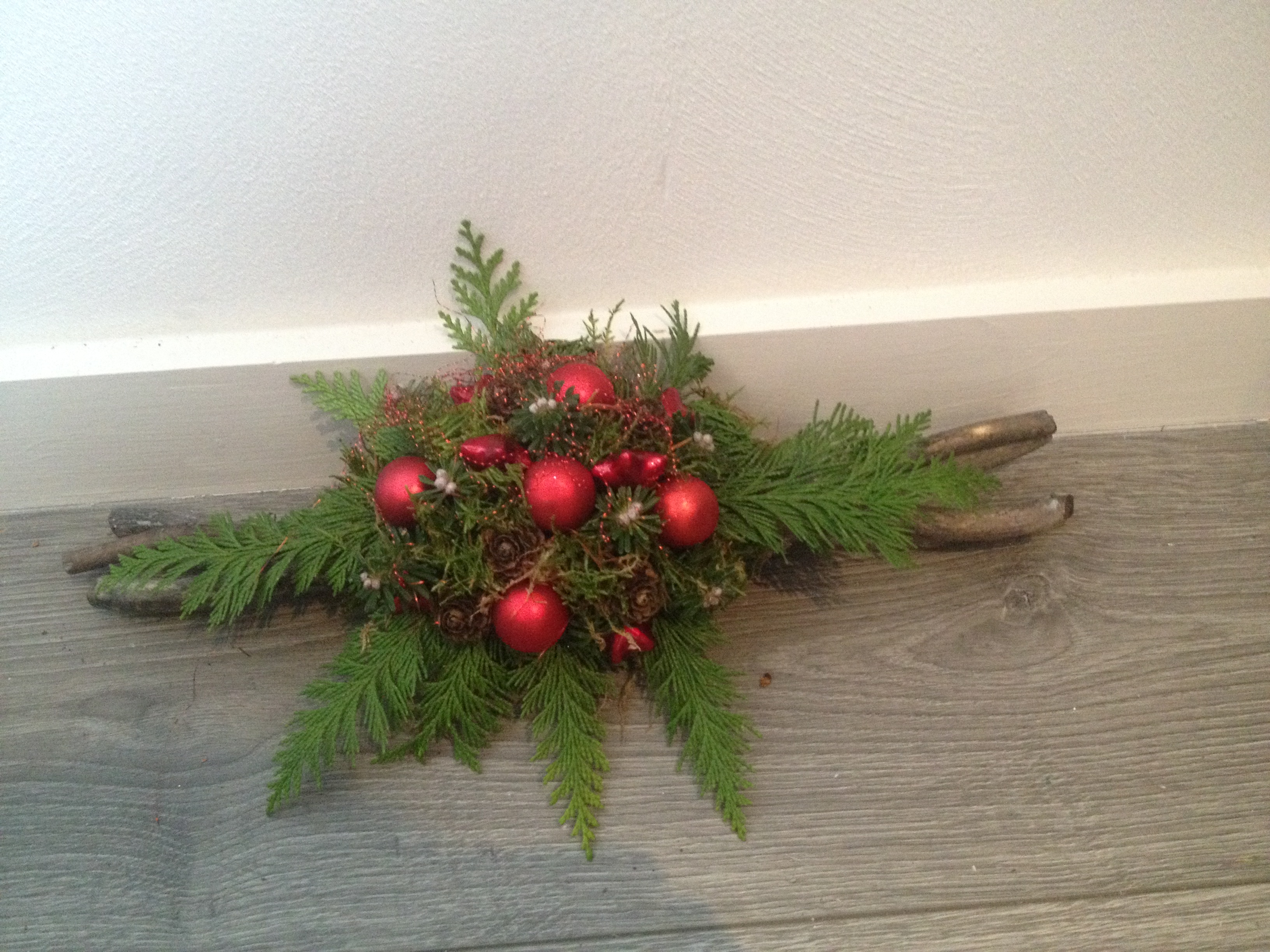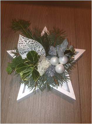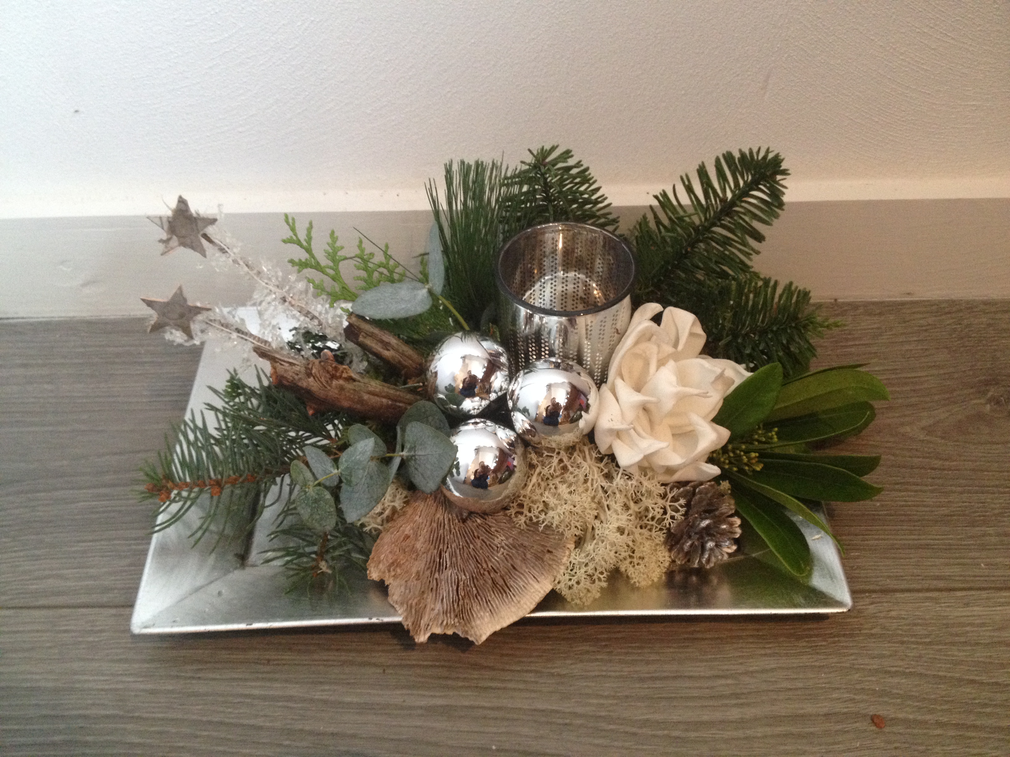 De kerststukjes zijn zelf ontworpen en gemaakt met verse takken zodat ze minimaal 2 weken staan!