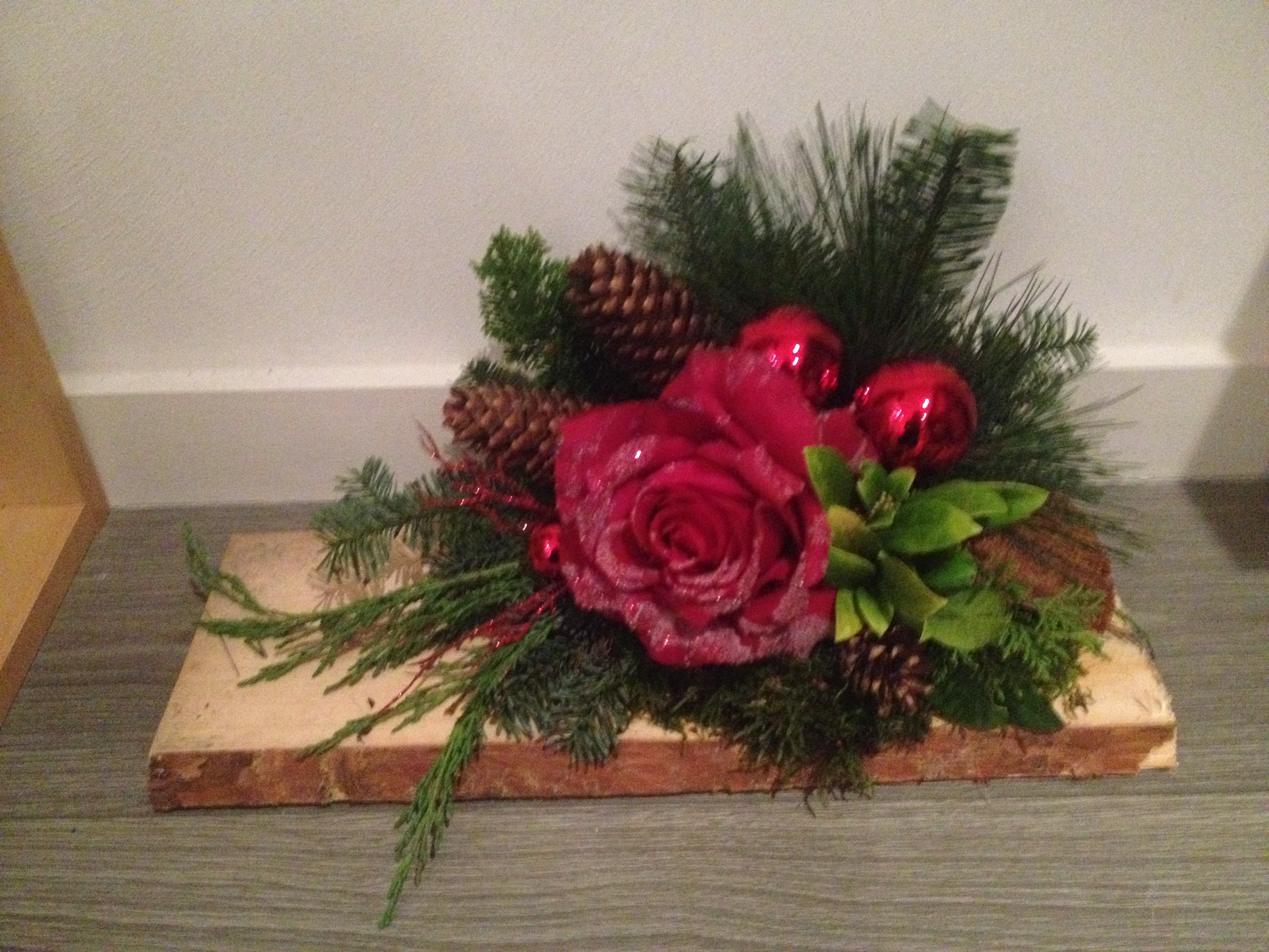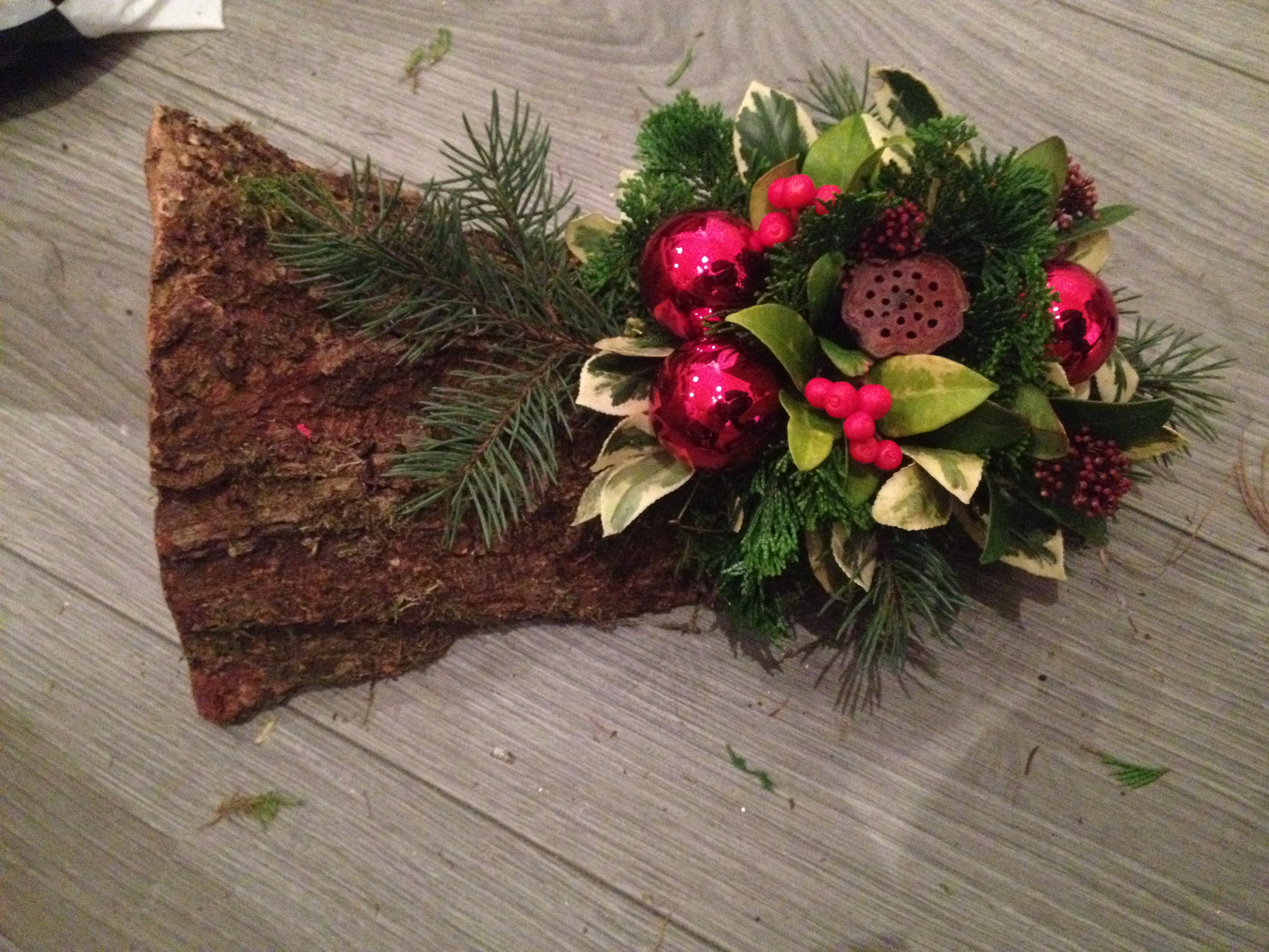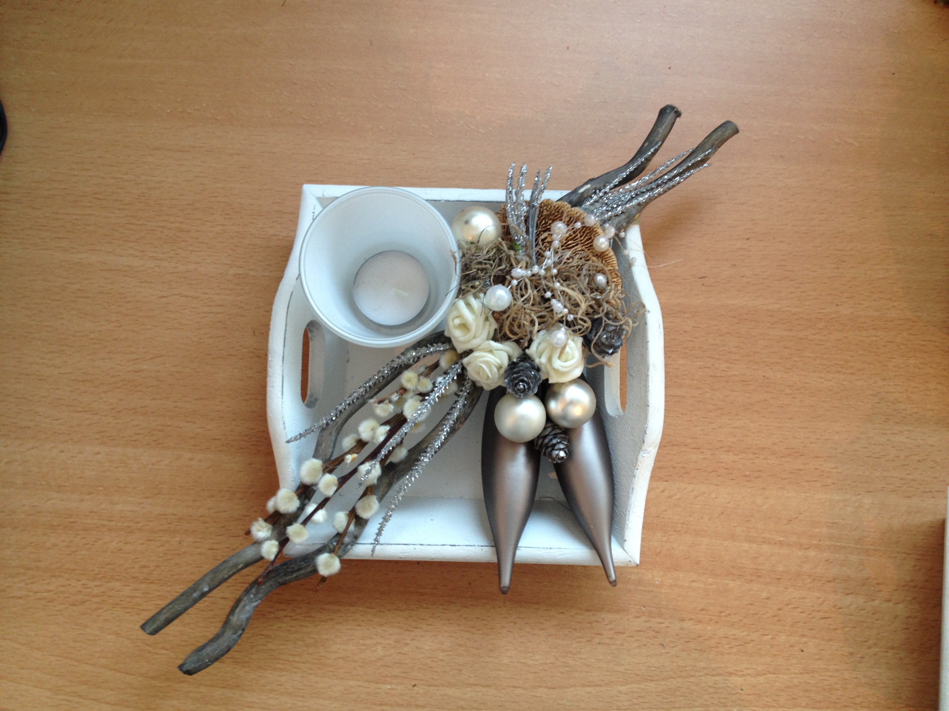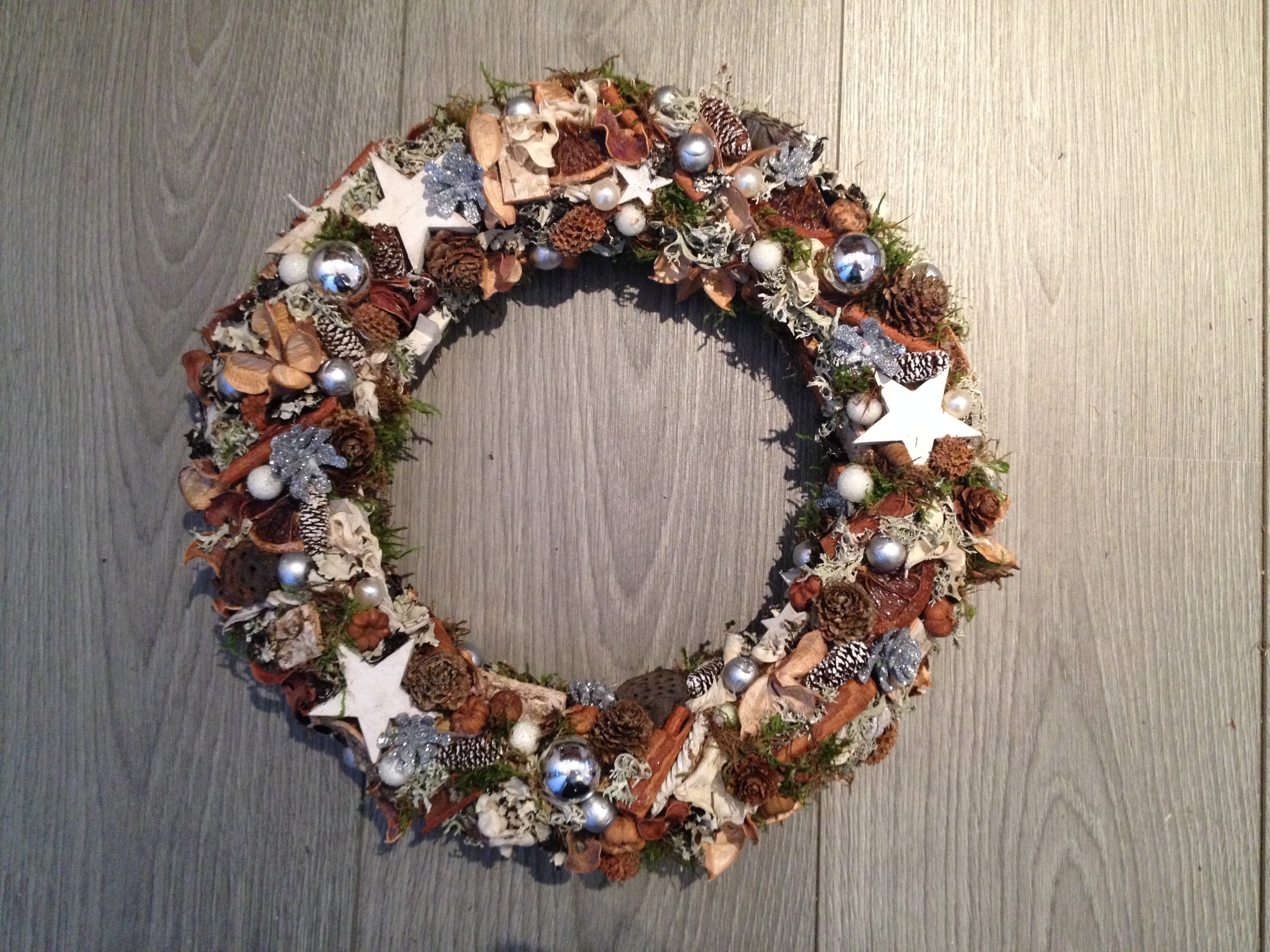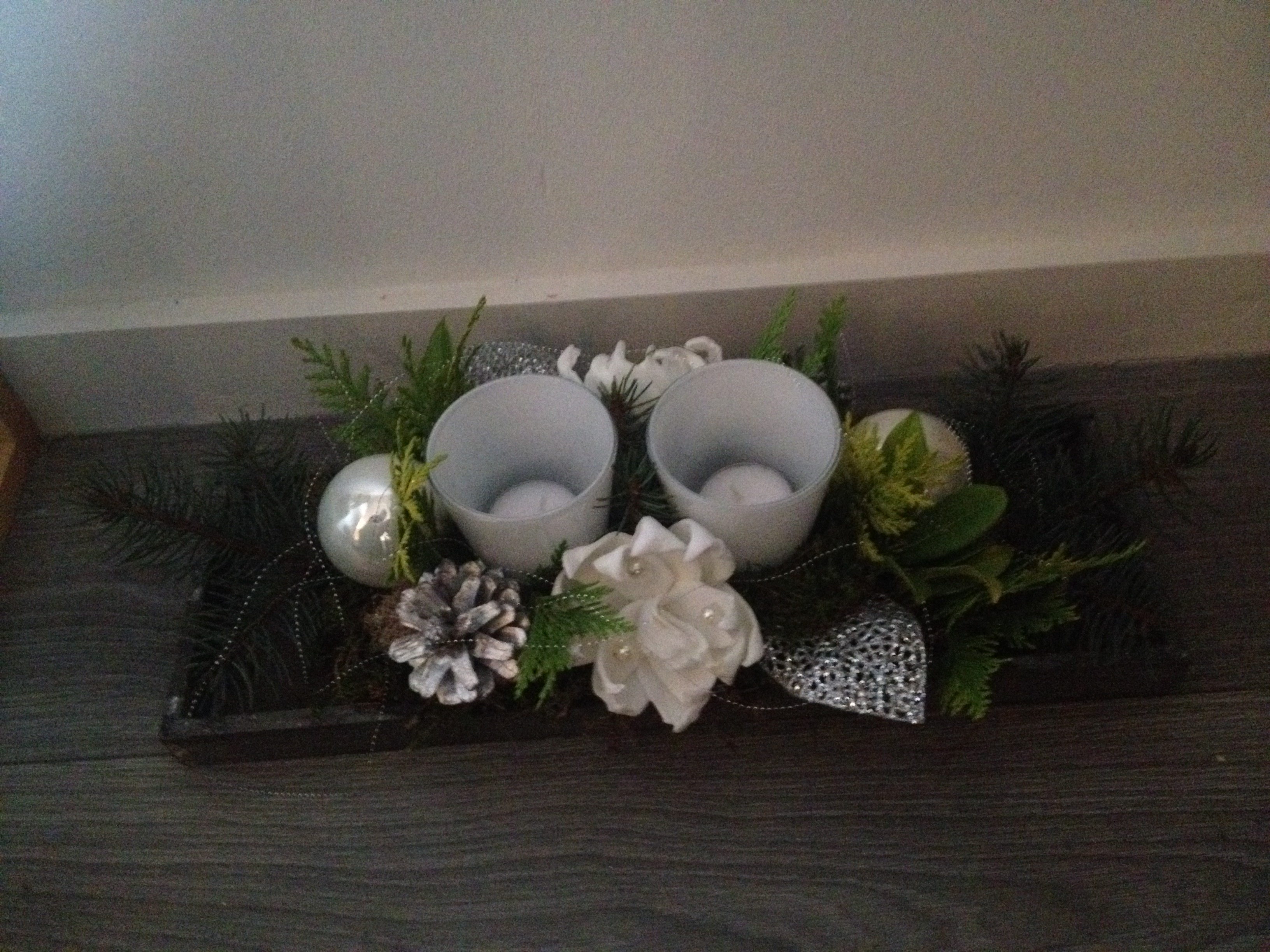 De kerststukjes zijn zelf ontworpen en gemaakt met verse takken zodat ze minimaal 2 weken staan!